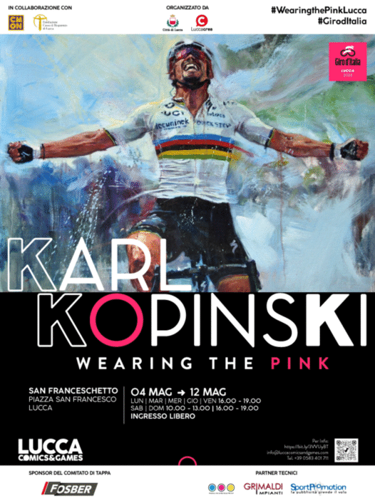 Negli spazi di San Franceschetto, dal 3 al 12 maggio, la mostra “Karl Kopinski: Wearing the Pink” dedicata ai grandi eroi del ciclismo che coniuga l’arte fantastica con le due ruote.